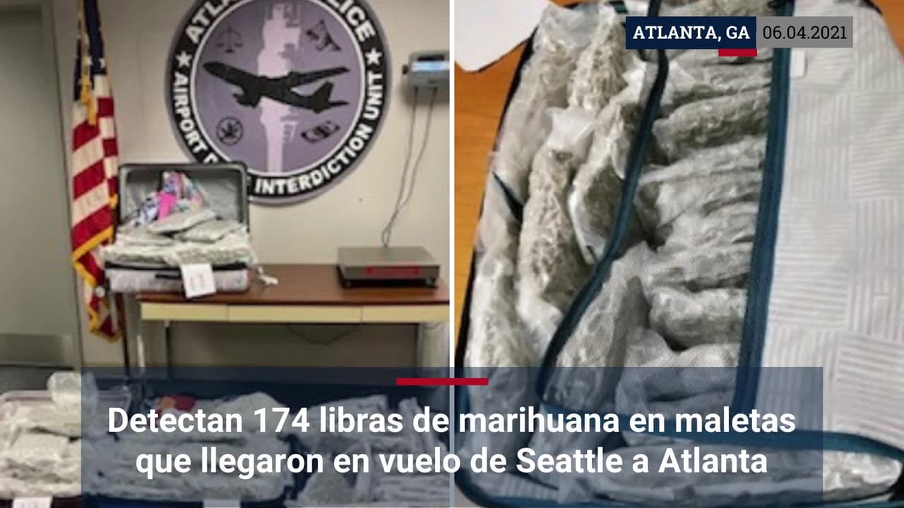Un total de 174 libras de marihuana decomisó la Unidad de Interdicción de Drogas del Departamento de Policía de Atlanta en un vuelo que salió de Seattle, Washington, hacia Atlanta.