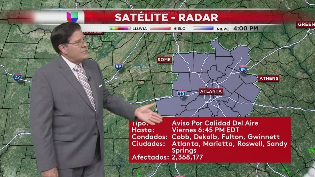 La advertencia por baja calidad del aire continuará este viernes para el área metropolitana de Atlanta. Las temperaturas seguirán altas y se espera que regresen a valores normales de verano hasta la próxima semana.