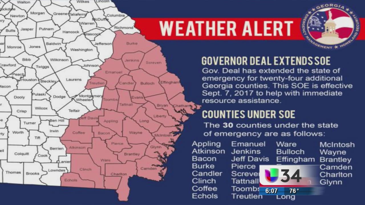 Declaran estado de emergencia en 30 condados de Georgia por Irma