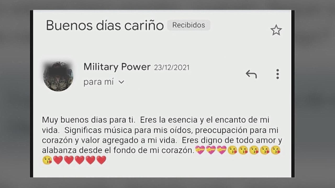 El sujeto, a quien Mayra llamó el “Military Power”, envió una serie de mensajes en los que le prometió que se casaría con ella y la llamaba “cariño”.
