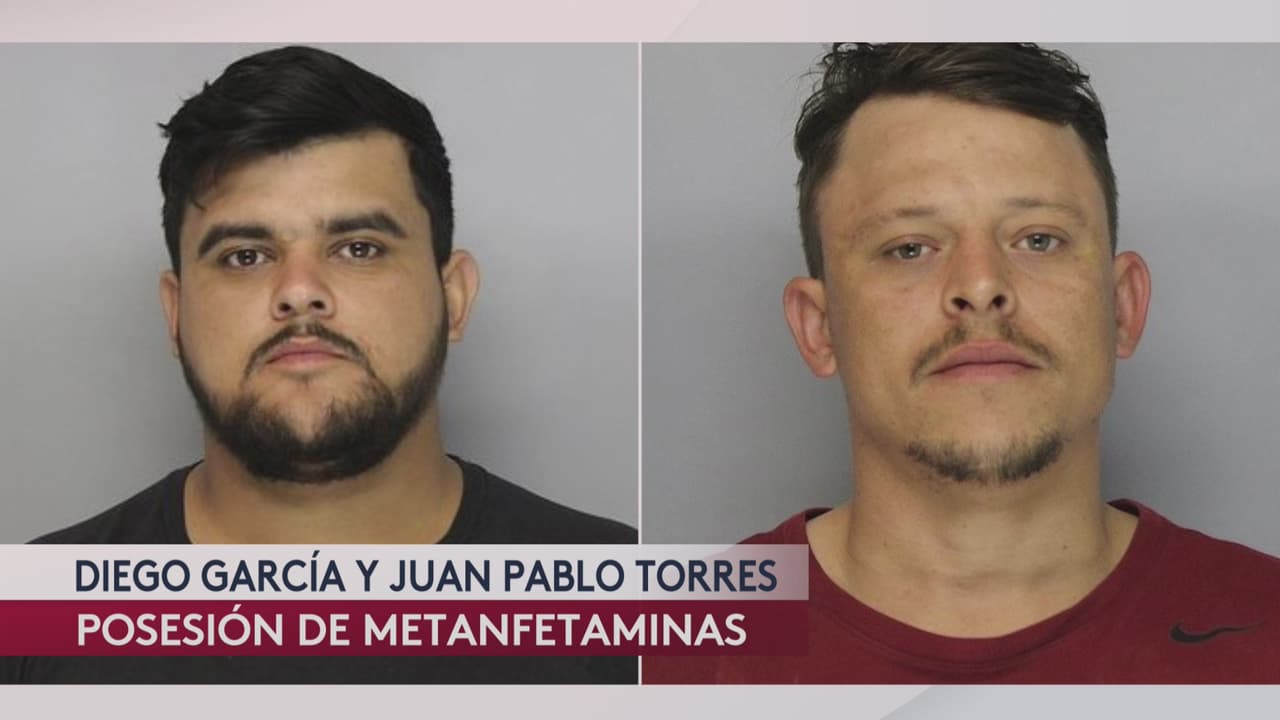 Diego García y Juan Pablo Torres fueron detenidos durante una parada de tráfico en el condado Hall, cuando los agentes revisaron la unidad hallaron una bolsa con aproximadamente 5 kilogramos de metanfetaminas.