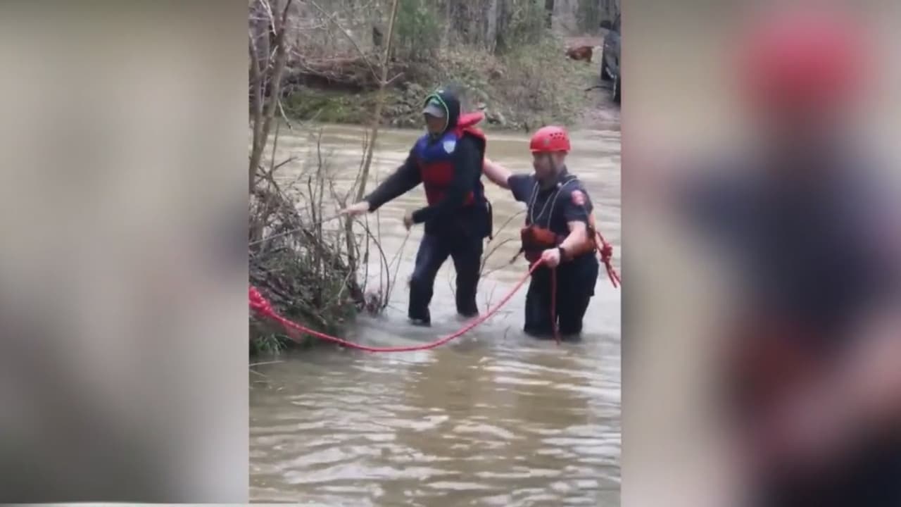 Según reportes los hombres se habían ido de excursión, pero las condiciones climáticas elevaron las condiciones del agua y cuadrillas de rescate lograron salvarlos.