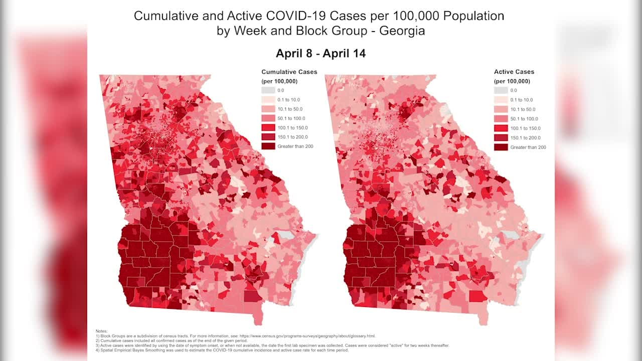 El condado de Fulton contabiliza 2,500 casos con 91 muertes, seguido por DeKalb con 1,721 casos, Dougherty suma 1,465 infectados y 108 fallecidos, le sigue Gwinnett con 1,382 y Cobb 1,368 contagiados.