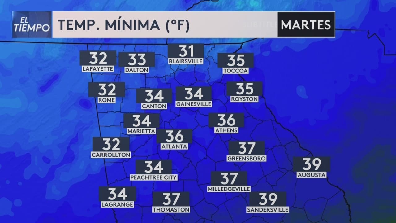No se esperan impactos del clima invernal para el área metropolitana de Atlanta, aunque el Servicio Meteorológico Nacional puede poner algunos condados en el noreste de Georgia bajo un Aviso de clima invernal más tarde hoy para impactos menores.