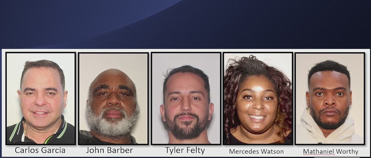 Los sospechosos presuntamente se hacían pasar como los dueños de cuentas para trasferir miles de dólares a sus propias cuentas en diversos bancos en el condado Gwinnett. Los acusados fueron identificados como Carlos Garcia, John Barber, Tyler Felty, Mercedes Watson y Mathaniel Worthy.