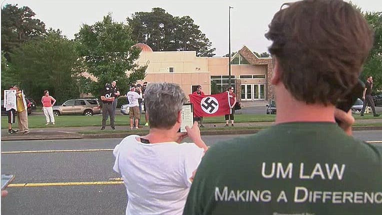 La noche del sábado un grupo de personas se presentaron afuera de una sinagoga en el condado Cobb con carteles con mensajes en contra de la comunidad judía y banderas con la esvástica nazi. La protesta se realizó afuera de la sinagoga Chabad of Cobb County, ubicada sobre Lower Roswell Road en Marietta, cuando se estaban terminando los servicios de Shabat.