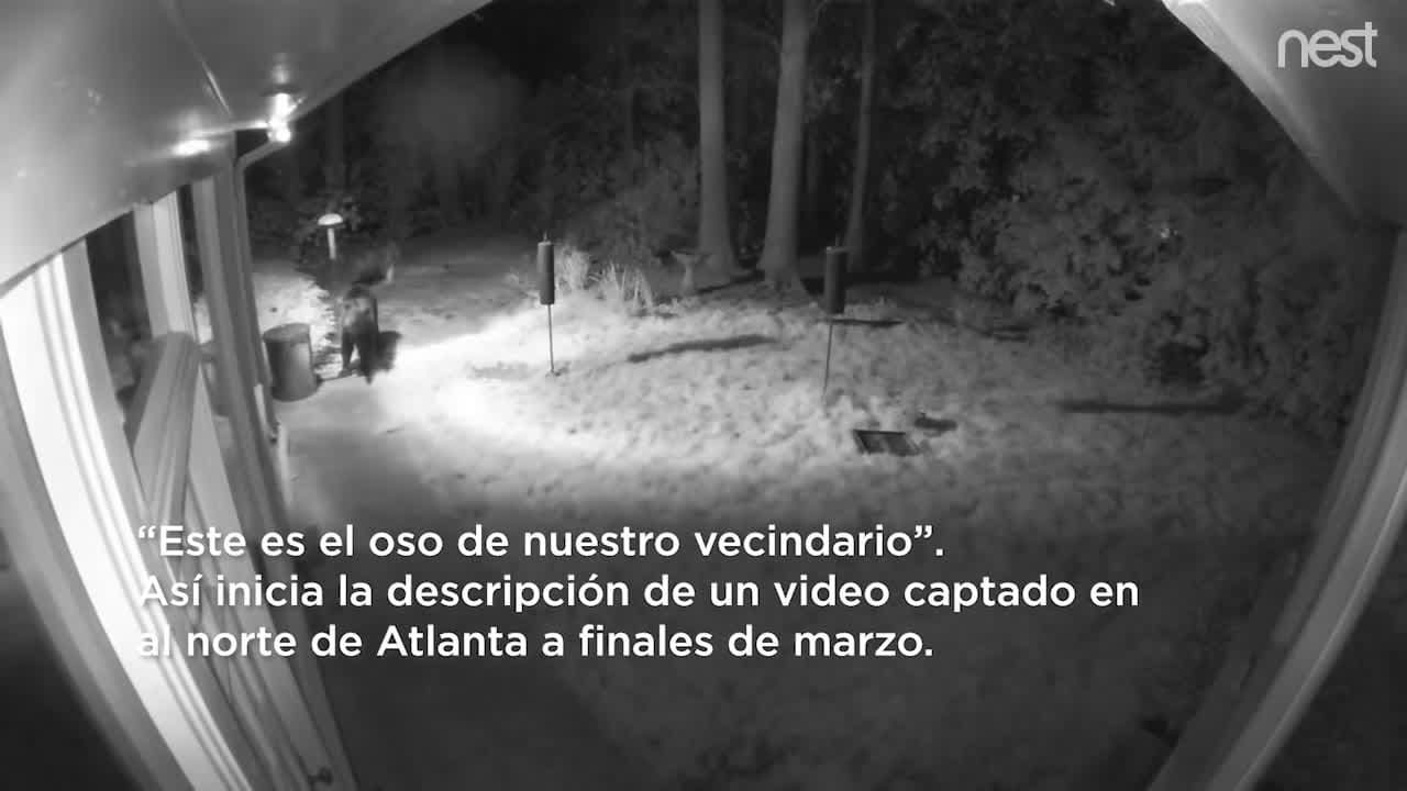 Un residente de Buckhead, al norte de Atlanta, grabó a un oso que llegó de noche a hurgar en los recipientes de comida para aves en el patio de su casa. Dijo que no era la primera vez que pasaba.