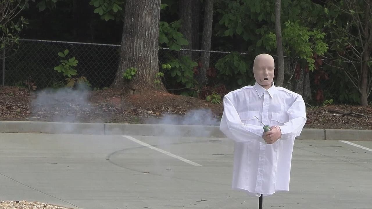 Los bomberos del condado Cobb realizaron una demostración de lo que ocurre cuando los fuegos artificiales explotan en la mano de una persona o son detonados muy de cerca. Durante este ejercicio, dieron a conocer los riesgos que existen incluso con las luces de bengala.