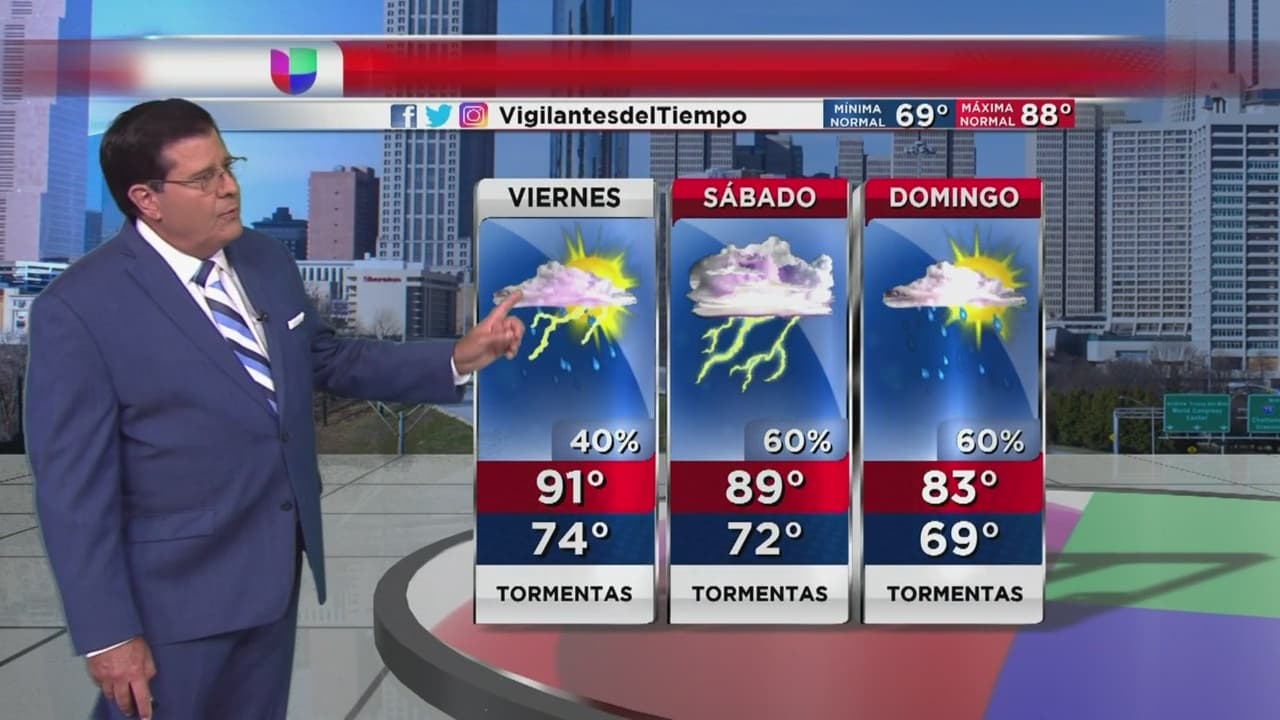 La llegada de un frente frío traerá tormentas al área de Atlanta y ayudará a reducir las altas temperaturas registradas las últimas semanas. Se pronostica que la próxima semana se tendrán condiciones normales de verano.