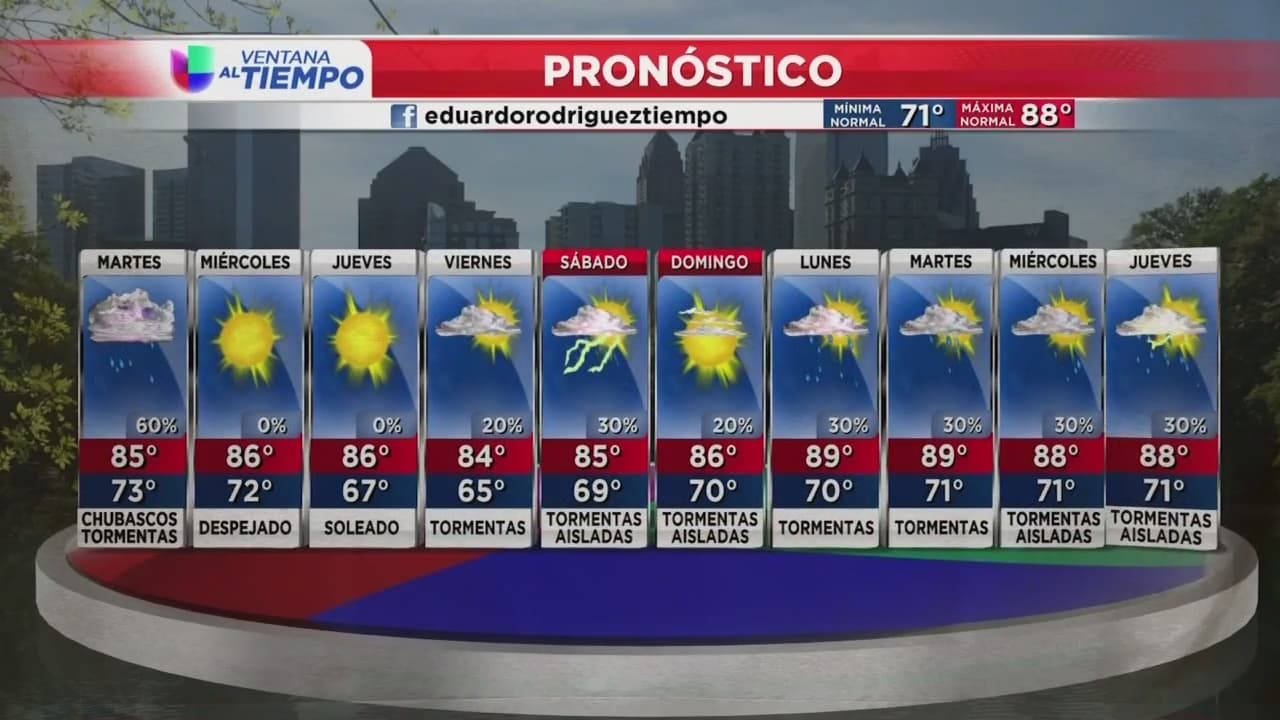 Mientras tanto la ciudad de Atlanta tendrá temperaturas alrededor de los 85 grados con posibles chubascos en la tarde.