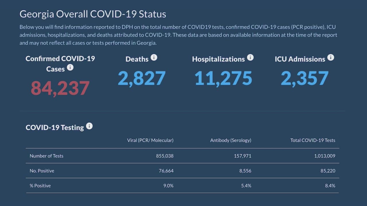 Georgia ha establecido otro récord de un solo día para un aumento en los casos confirmados de coronavirus en el estado. Cerca de 3.000 nuevos casos se agregaron el miércoles mientras el gobernador de Georgia continúa instando a los residentes a enmascararse.Hasta las 3 pm del miércoles, 84,237 casos de COVID-19 han sido confirmados, según el Departamento de Salud Pública de Georgia . Eso es un aumento de 2,946 casos en las últimas 24 horas.