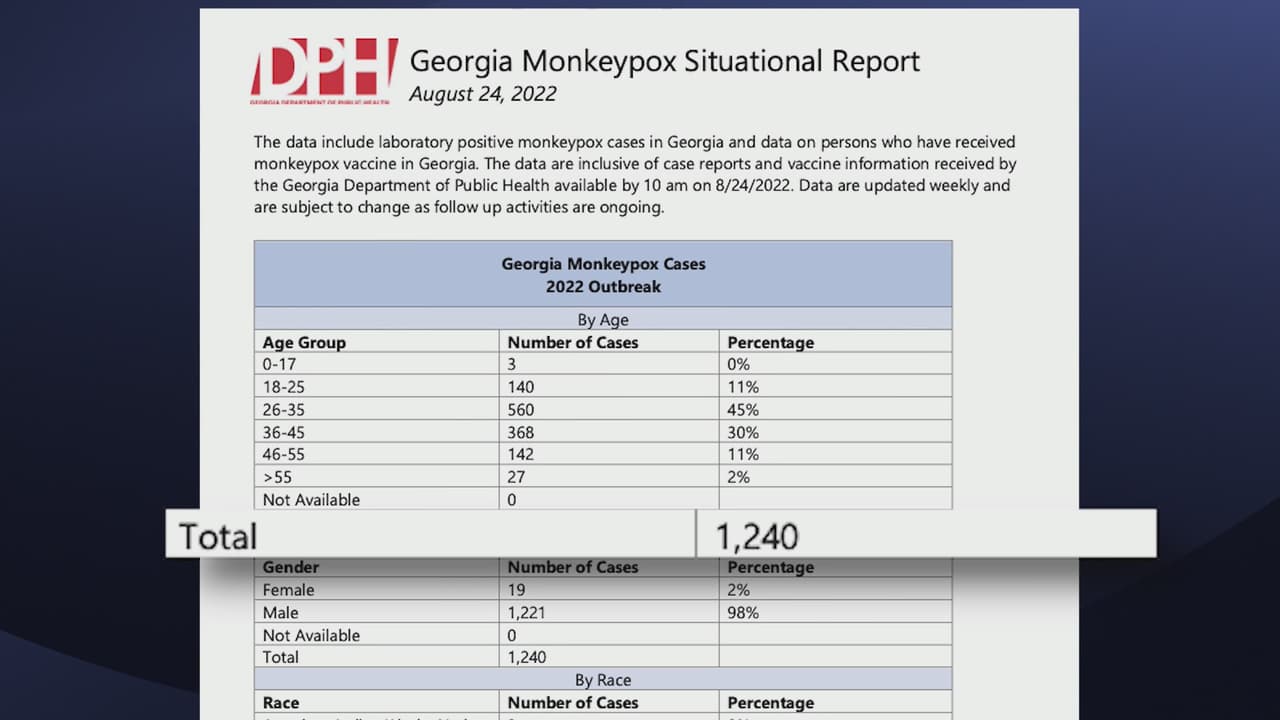 El Departamento de Salud de Georgia reportó 1,240 casos de viruela del mono, de los cuales 3 fueron identificados en menores de entre 0 y 17 años.