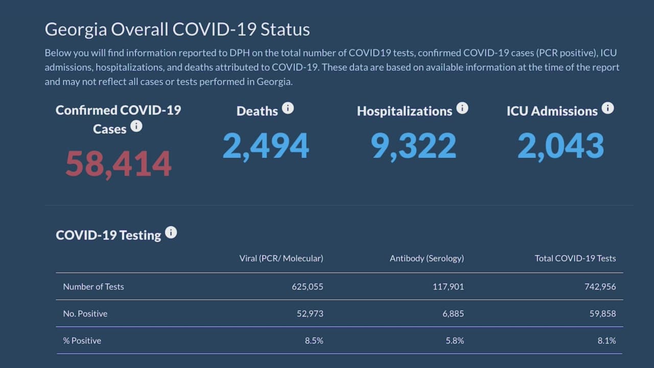 Los casos en todo Georgia sumaron en cuatro días 3,441 nuevas infecciones.