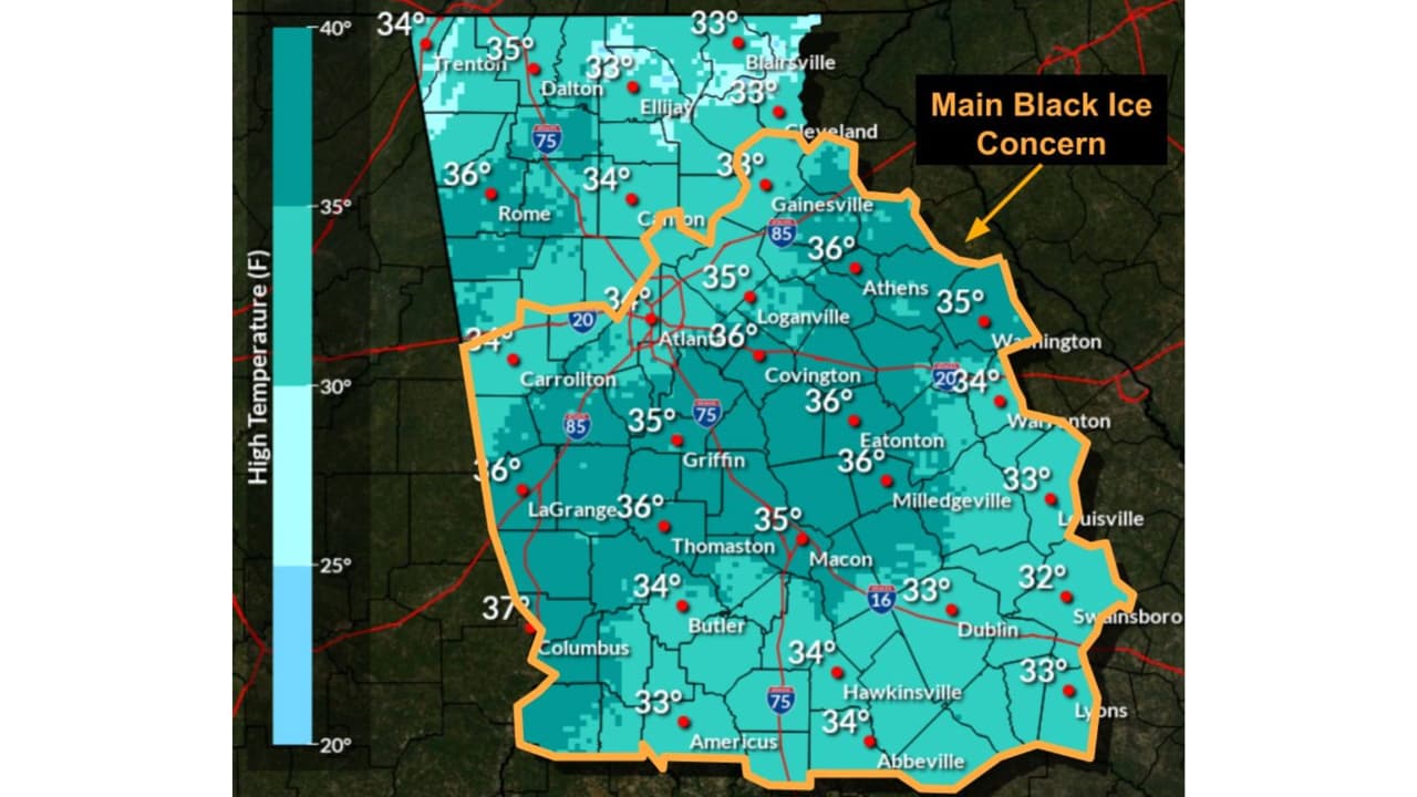 Gran parte de Metro Atlanta está en la zona de mayor riesgo por ‘hielo negro’