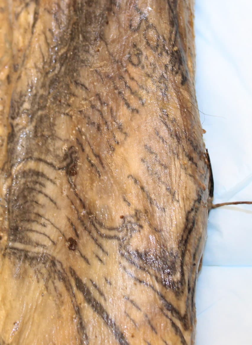 Al momento de su localización, la policía del condado Gwinnett publicó las fotografías de los tatuajes que portaba el cuerpo