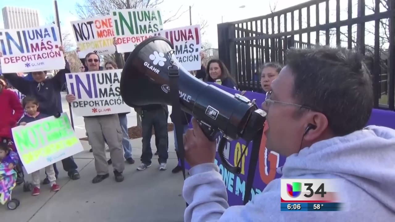 Decenas de personas se manifestaron en el centro de la ciudad de Atlanta para protestar por derechos de los inmigrantes y mostrar su rechazo a las recientes redadas en el estado.