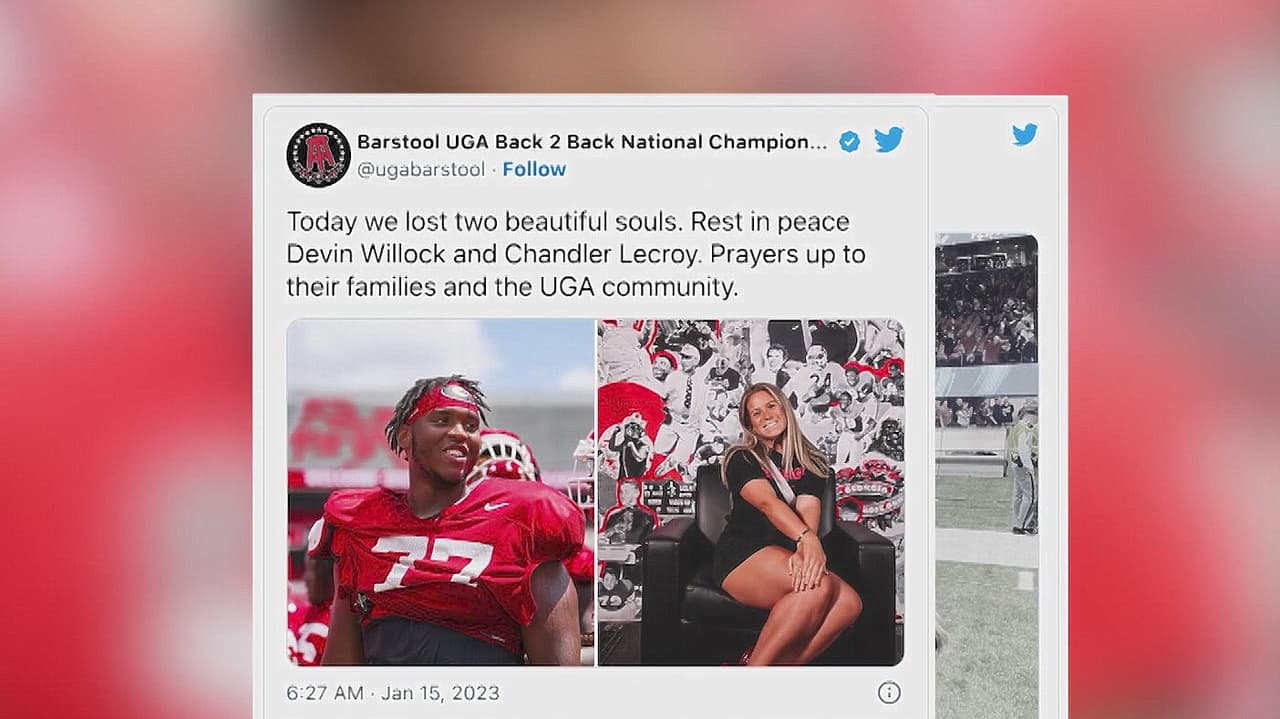 La celebración por el segundo campeonato de la Universidad de Georgia se convirtió en tragedia después de un accidente automovilístico provocara la muerte de el liniero ofensivo Devin Willock y la integrante del personal del equipo Chandler LeCroy la madrugada del domingo. Otros dos miembros del programa de fútbol también resultaron heridos y se encuentran estables.