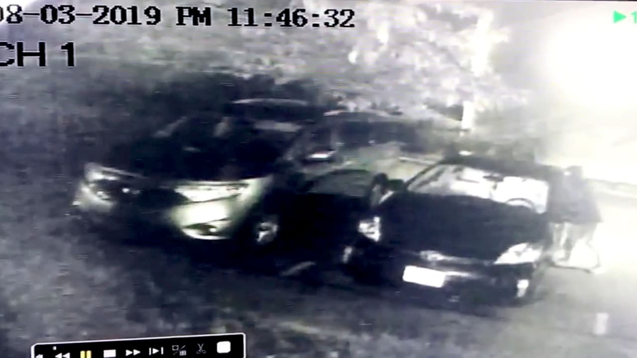 Videos de cámara de vigilancia muestran a tres sujetos, posiblemente adolescentes o jóvenes, que caminan frente a la vivienda. Uno de ellos se acerca al auto, lo abre y se ve cuando ingresa y busca en el interior.