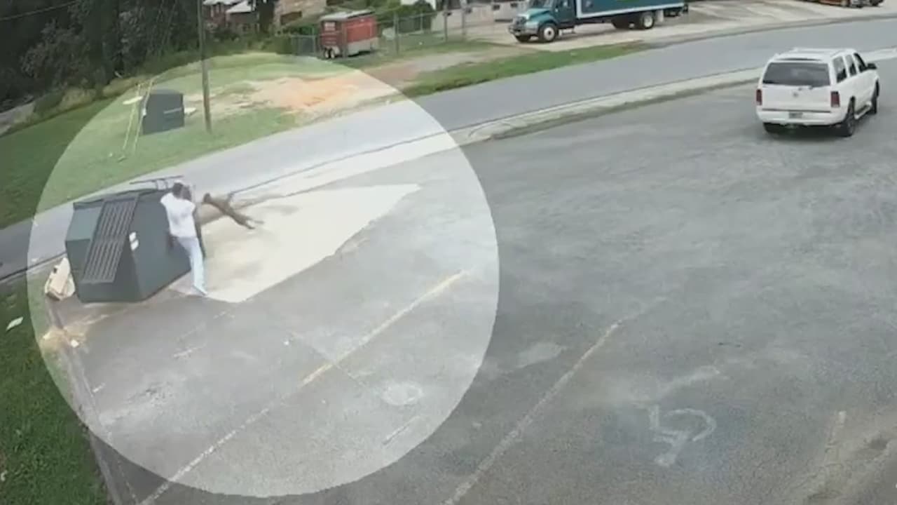 El incidente que quedó captado en video de la cámara de seguridad de una guardería, se observa a un hombre tirando fuertemente de la correa del perro y lanzándolo a un contenedor de basura.