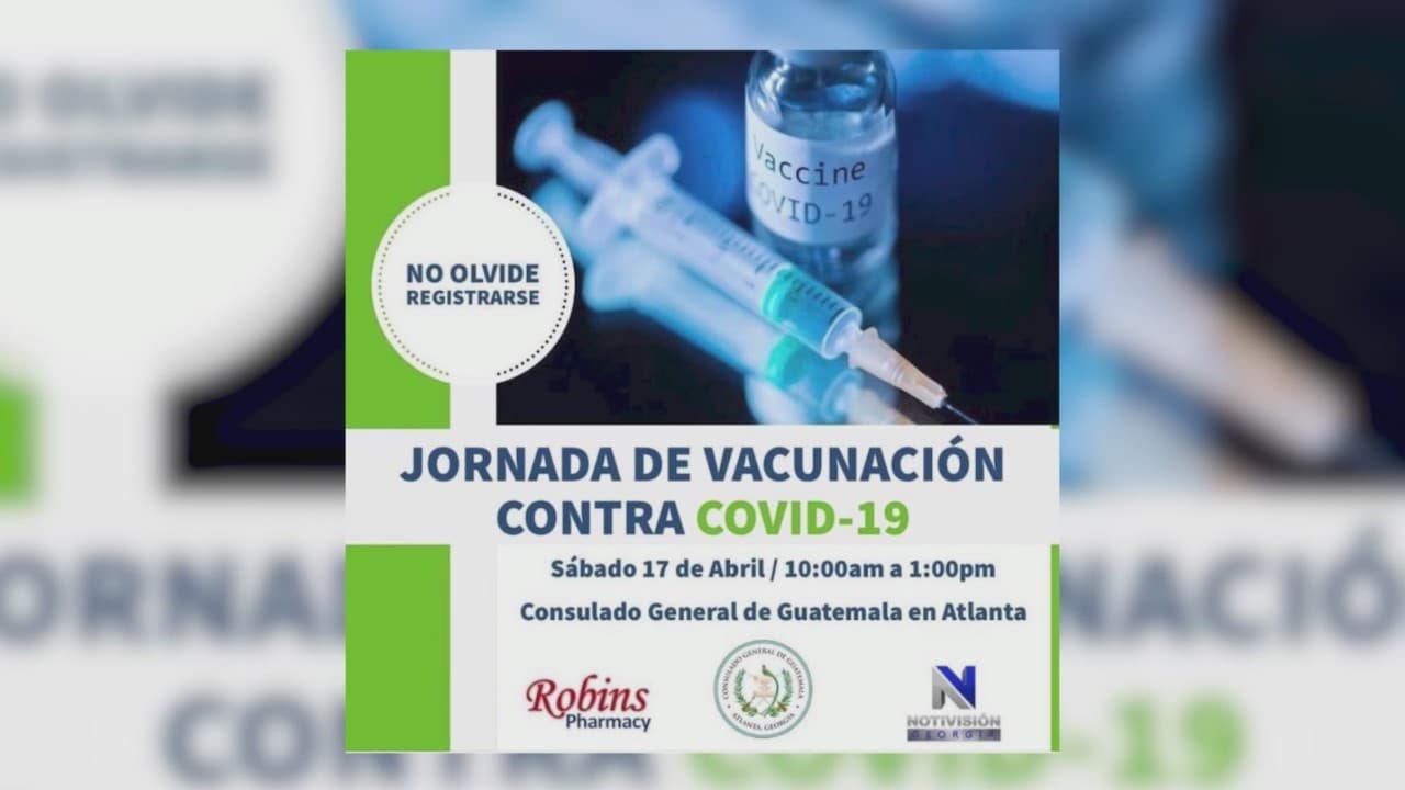 Este sábado se llevará acabo una jornada de vacunación en el Consulado de Guatemala en Atlanta. La actividad será desde las 10:00 am hasta la 1:00pm. Los interesados mayores de 18 años deberán registrarse en la página web form.jotform.com para asegurar una dosis.