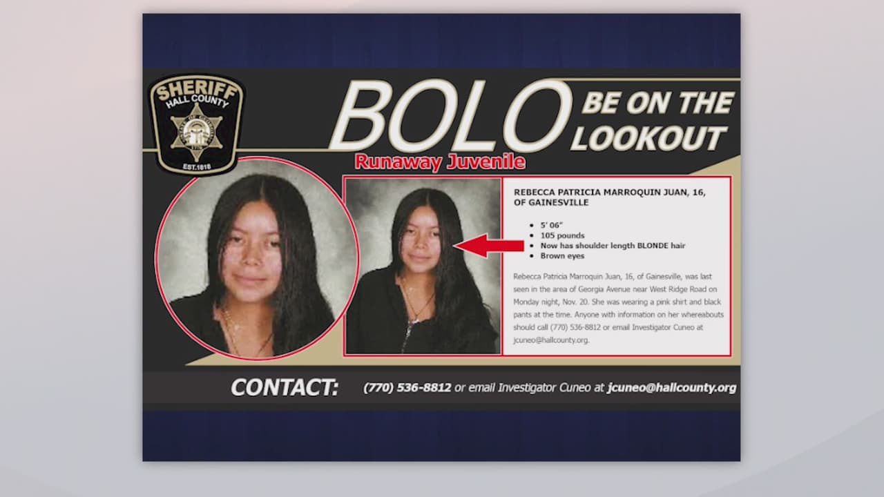 La Oficina del Sheriff del condado de Hall pide ayuda del público para estar atentos a una joven fugitiva de Gainesville. Se trata de Rebecca Patricia Marroquín Juan, de 16 años, quien fue vista por última vez la noche del 20 de noviembre en el área de Georgia Avenue y West Ridge Road.