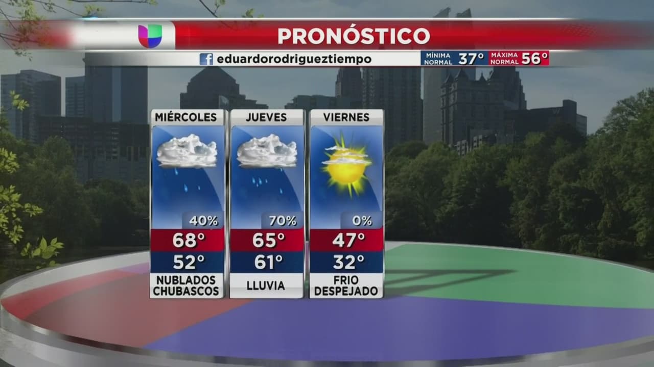 Las posibilidades de tormentas bajarán un poco este miércoles aunque se anticipa que se intensificarán durante la mañana del jueves. Se espera que las temperaturas bajen durante el fin de semana y que las lluvias vuelvan a partir del domingo.