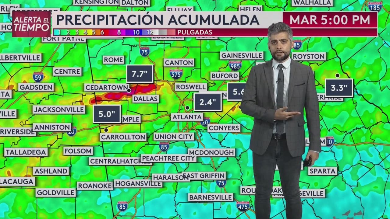 Algunas zonas del área metropolitana de Atlanta registraron hasta siete pulgadas de lluvia durante el avance de una línea de tormenta por el centro y norte de Georgia.
