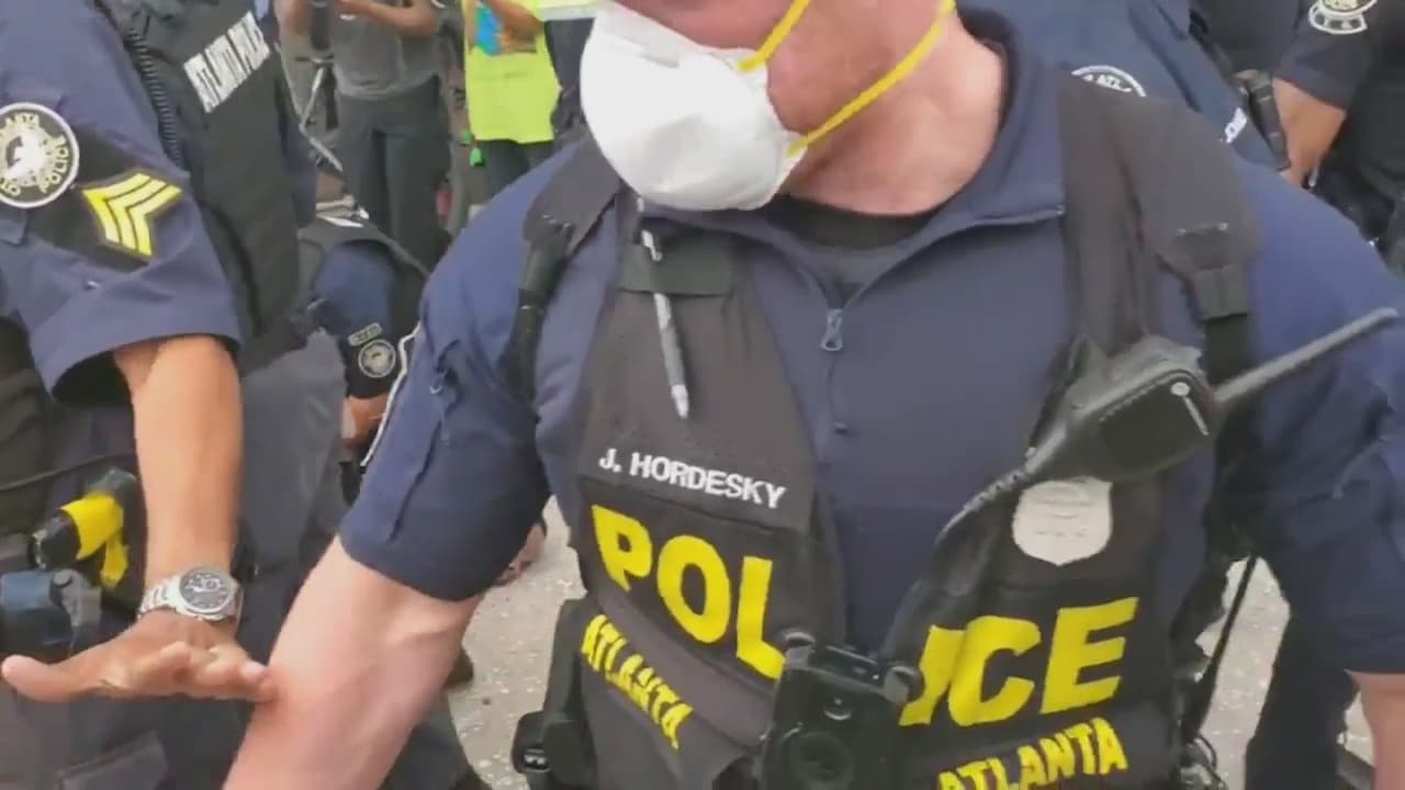 Manifestantes y policías enfrentados durante protestas en Atlanta por la muerte de George Floyd