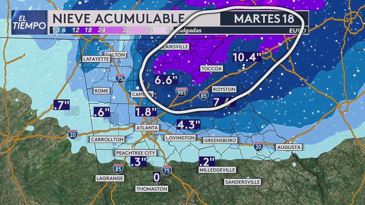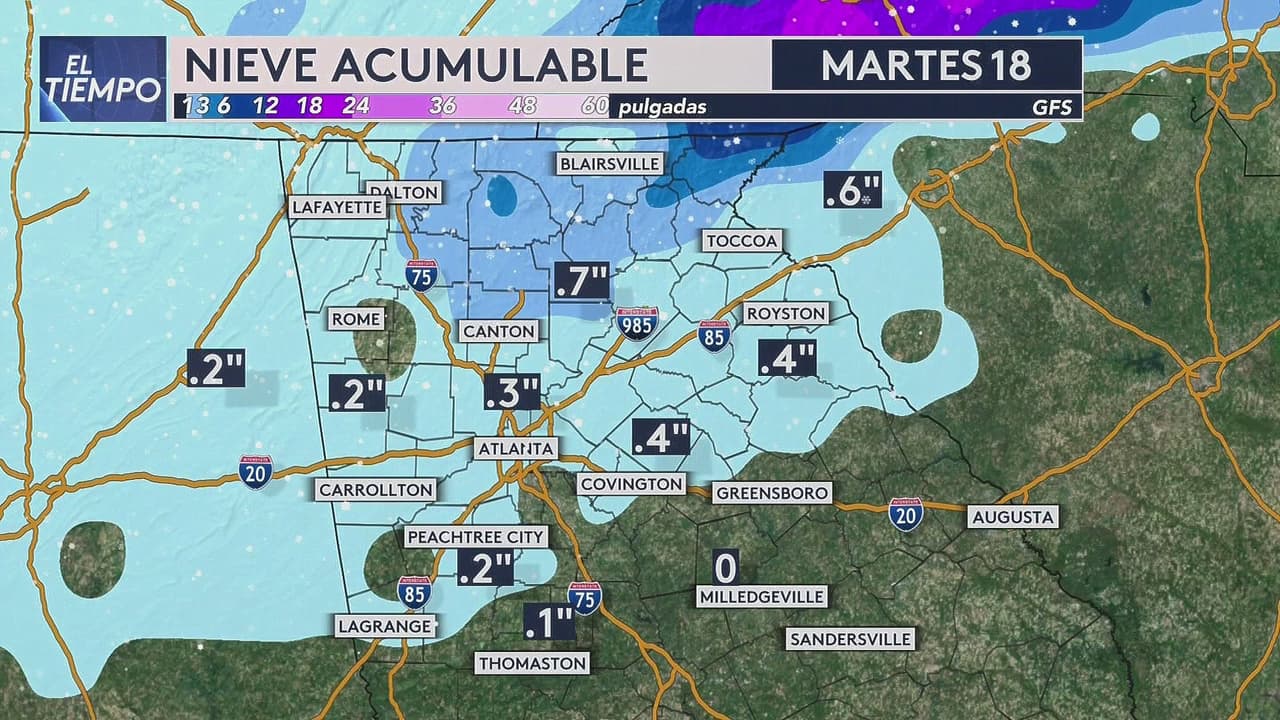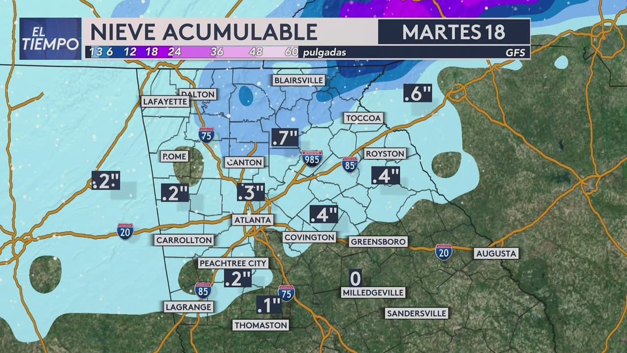 En ese modelo, Metro Atlanta recibiría una pulgada de nieve.