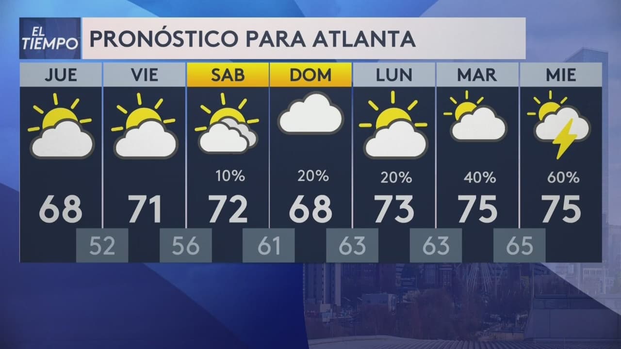 Mitad de semana con temperaturas superiores al promedio registrado en Atlanta