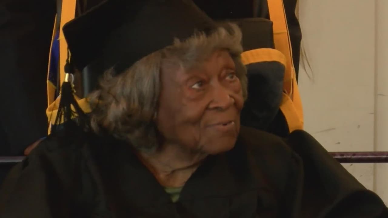 Ellouise Lewis de 90 años y residente de Misisipi dejó la escuela en décimo grado, pero gracias a su ímpetu y ayuda del personal del Centro Gulfport logró obtener su diploma honorario GED; ya que no tiene validez oficial.
