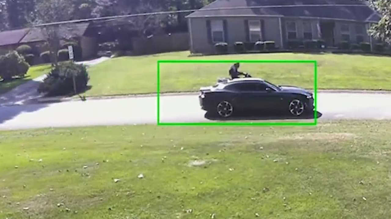 Cámara de seguridad grabaron al sospechoso huir alrededor de las 12:00 del mediodía del miércoles y al parecer a uno de sus cómplices en un auto negro.