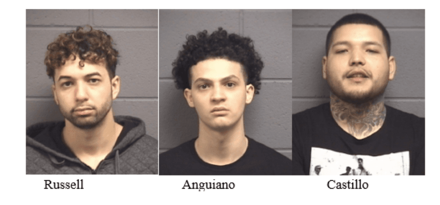 José Castillo, de 23 años, Antonio Anguiano, de 19 y Tayton Russell, de 26, fueron puestos bajo custodia este martes en una casa ubicada sobre la cuadra 1000 de Feagin Mill Road, unas 102 millas al sur de Atlanta, informó la Policía de Warner Robins en un comunicado.