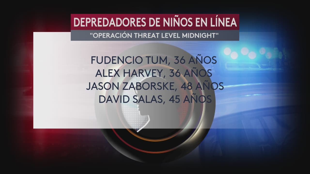 Fudencio Tum, Alex Harvey, Jason Zaborske y David Salas fueron arrestados en "Operación Threat Level Midnight", una operación encubierta para detectar a depredadores de niños.