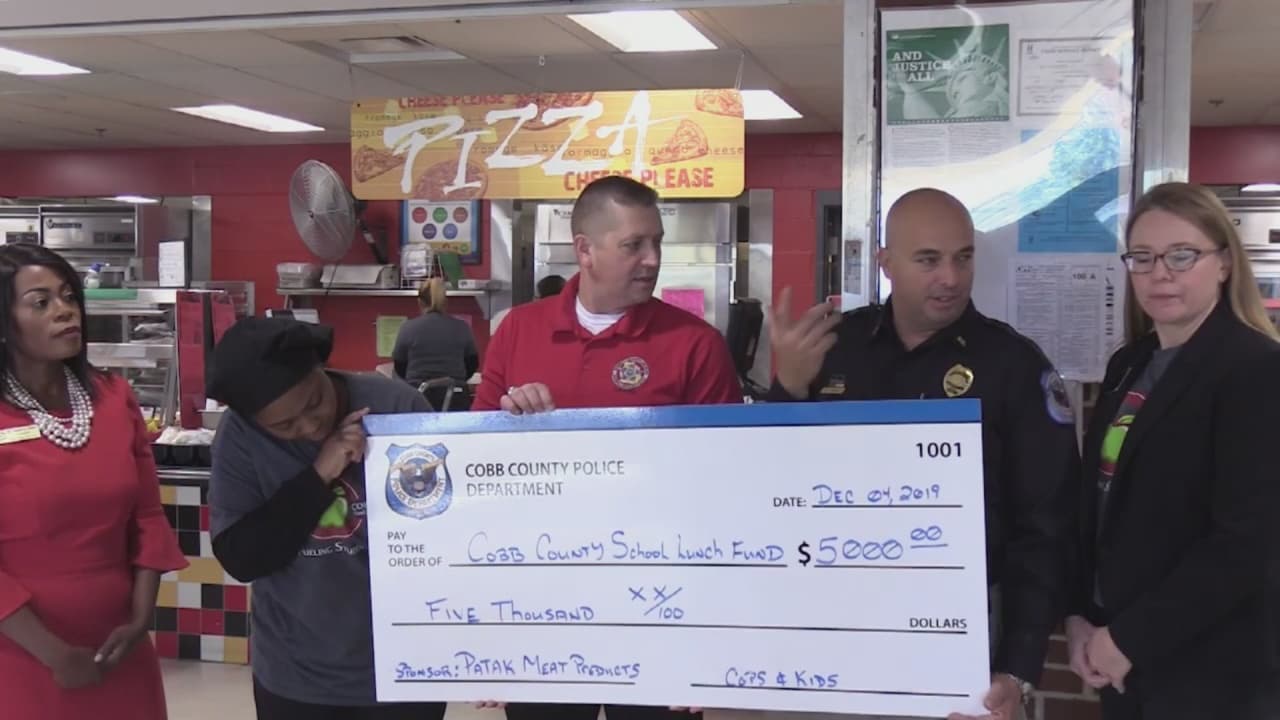 La Policía del condado de Cobb entregó este miércoles un cheque por 5,000 dólares que servirá para cubrir parte de una deuda que tienen familias en una preparatoria del condado y que no le permite a los estudiantes recibir alimentación completa. Al menos el 40 por ciento de los alumnos en la institución son de origen hispano.