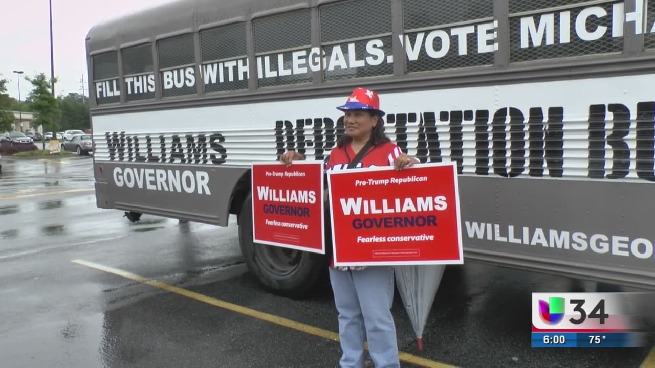 Simpatizantes hispanos del partido republicano se concentraron en la parada del denominado “autobús de las deportaciones”, para mostrar su simpatía a la polémica campaña de Michael Williams.