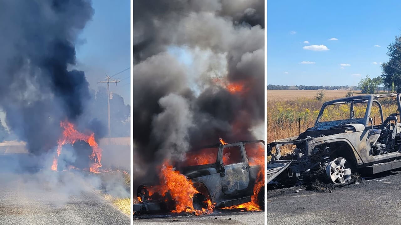 El incendio se reportó el 24 de octubre en la cuadra 1000 de Pretoria/Tarva Road. El conductor de la entrega resultó ileso. El auto quedó completamente calcinado.