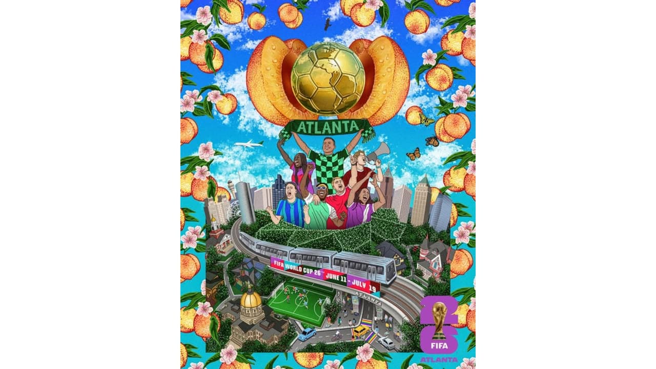 ATLANTA, Georgia. - Atlanta será una de las 11 ciudades en donde se jugarán partidos del Mundial de Fútbol en 2026. Este sábado 22 de marzo, se dio a conocer el póster oficial que representará a la ciudad y un elemento causó controversia: los duraznos.