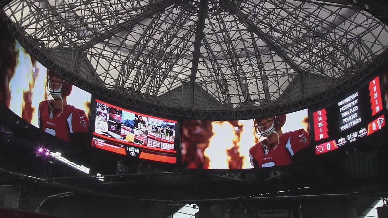 Hadathy dijo a Axios que cerca del balón de soccer dorado se ve un halcón (en representación de los Falcons, el equipo profesional de fútbol americano de la ciudad) y un avión.