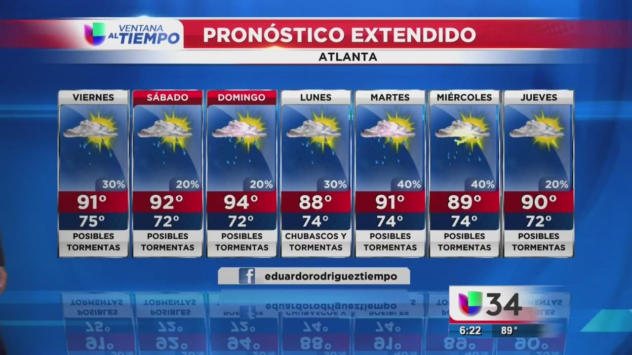 Un día con temperaturas agradables en la región, el termómetro con máximas de 90 grados para Canton, 89 para Atlanta y Marietta, poca brisa y cielos mayormente despejados.