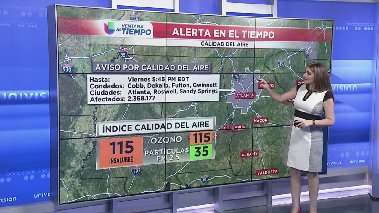 Este viernes tendrá altas temperaturas y estará marcado por una advertencia por baja calidad del aire en la zona metropolitana de Atlanta, debido a las altas concentraciones de ozono.