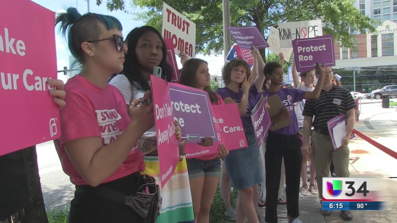 Luego de que Trump anunciara la nominación del conservador Brett Kavanaugh como juez de la Corte Suprema, varias personas se apostaron frente al edificio del senador David Perdue, para mostrar su rechazo a esta decisión.