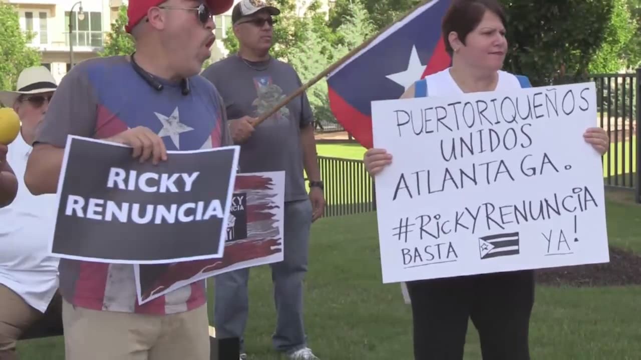 Decenas de puertorriqueños protestaron en el centro de Atlanta este lunes y se sumaron a una jornada para exigir la renuncia del gobernador Ricardo Roselló, quien se encuentra en medio de un escándalo de corrupción y enfrenta reclamos de falta de transparencia en su gestión.