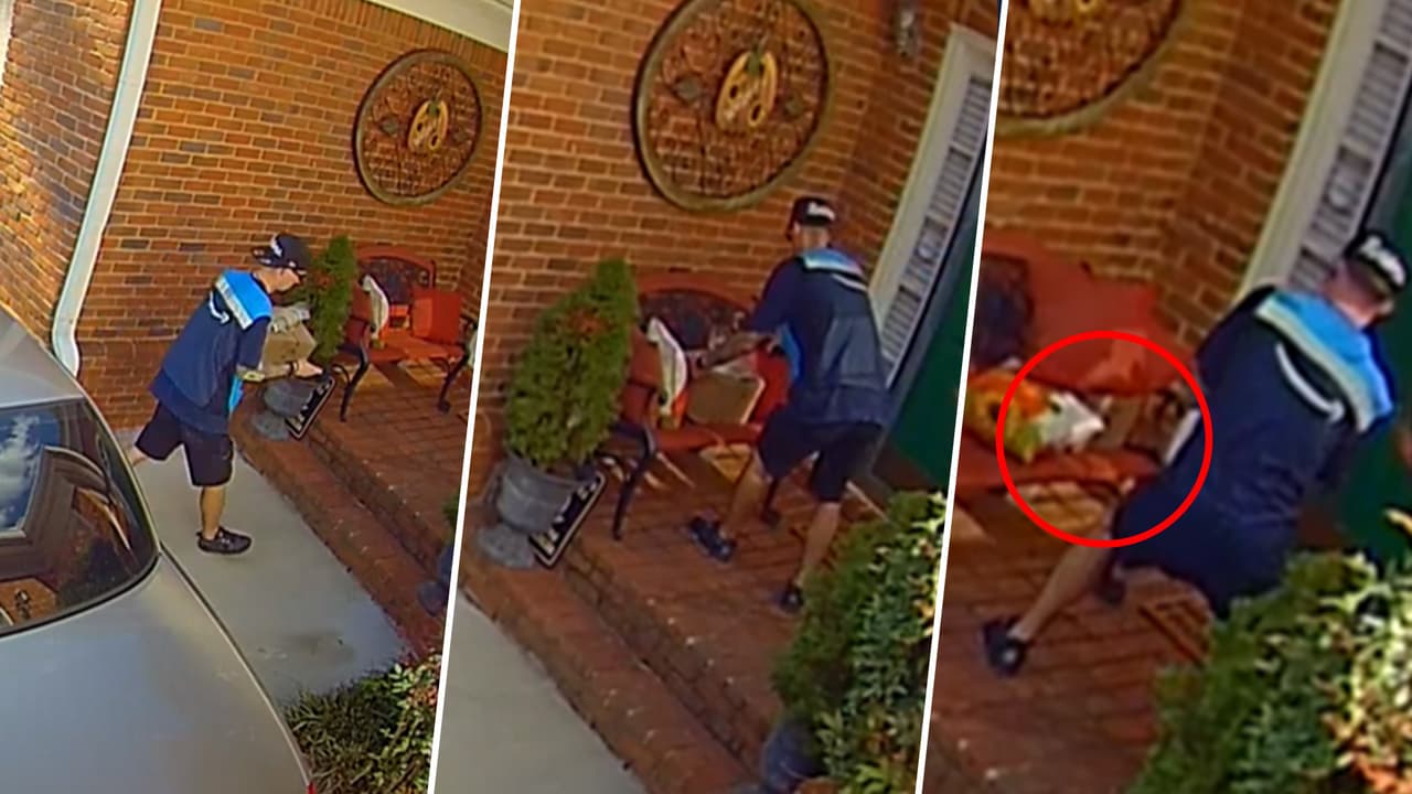 La cámara de vigilancia de la casa de una pareja de Johns Creek captó a un socio de entrega de Amazon haciendo todo lo posible para seguir algunas instrucciones difíciles de ocultar el paquete.
