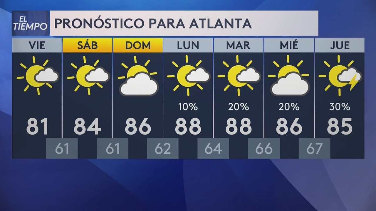 La humedad mucho más baja y las temperaturas más frescas la mañana de este viernes. Será soleado y cálido, pero no húmedo, con máximos cálidos estacionales con máximas por encima de los 80 grados.