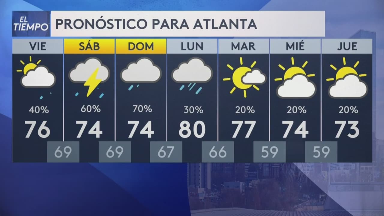 "Las fuertes lluvias serán la principal amenaza en el norte de Georgia este fin de semana, especialmente en el extremo norte y Noreste de Georgia, se espera un total de 2 a 4 pulgadas de lluvia, lo que pudiera generar inundaciones repentinas".