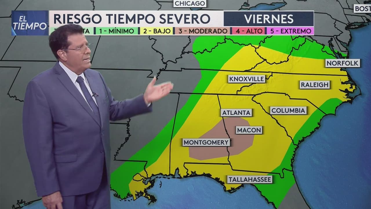 El meteorólogo Eduardo Rodríguez nos habla de la zona bajo riesgo de tiempo severo en Georgia este viernes y el horario en el que se prevé que inicien.