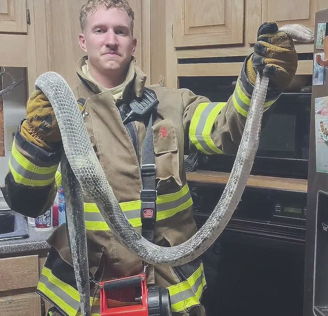 Los bomberos del condado Carroll respondieron a un informe de un incendio en una casa y cuando llegaron encontraron una serpiente muy grande. Las autoridades creen que la serpiente entró en la casa a través de un agujero en el piso debajo del horno y que provocó un cortocircuito en los cables, lo que provocó un incendio.