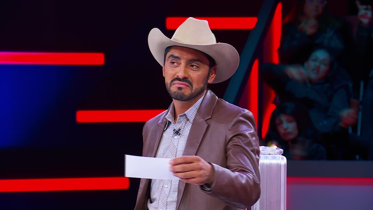 Directo del estado de México, Nacho celebra ser el elegido por la ruleta para ganar mucho dinero. Con toda la fuerza y actitud de todo un cowboy Nacho se la juega con todos lo maletines.