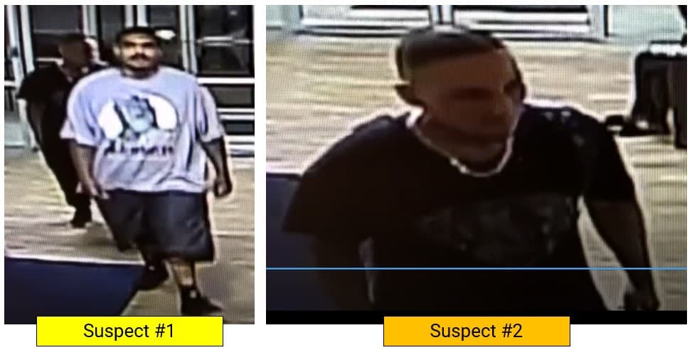El primero tendría unos 6 pies de altura y pesaría entre 250 y 300 libras. El segundo mide entre 5 pies y 6 pulgadas y 5 pies y 9 pulgadas de estatura, y tiene tatuajes en ambos brazos.
